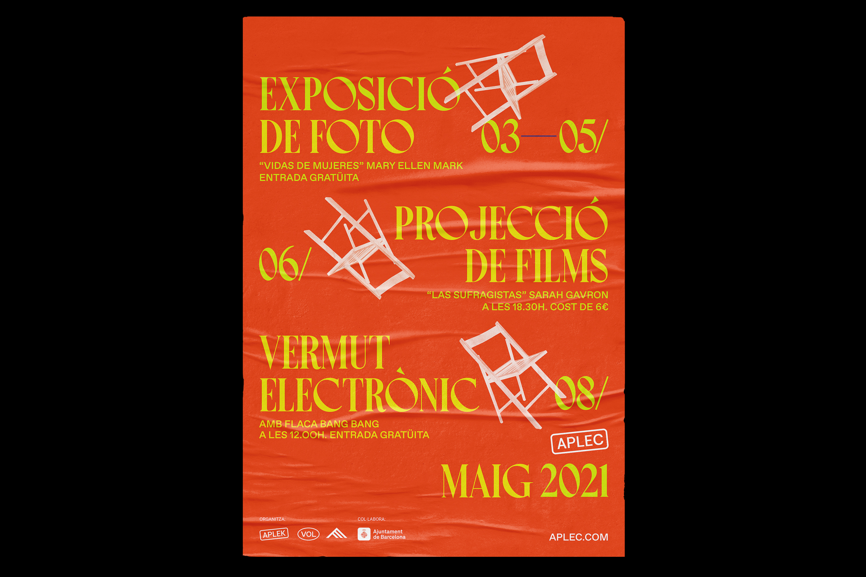 El objetivo que se plantea, es el de dar a conocer las nuevas actividades diurnas de la sala Vol, proponiendo un nuevo naming, sistema gráfico y dirección de arte, que dialogue con el ya existente de la sala. Su posicionamiento social, donde la gente coopera, hacen actividades, y tiene precios locales, nos sonaba a “pueblo”. Haciéndonos eco de todo ello, utilizamos la gráfica propia de las señales de entrada y salida de población siguiendo la misma estética con la sala Vol. Se apuesta también por una tipografía secundaria de un diseñador local para dar carácter, siguiendo el pensamiento social por el que apuestan.